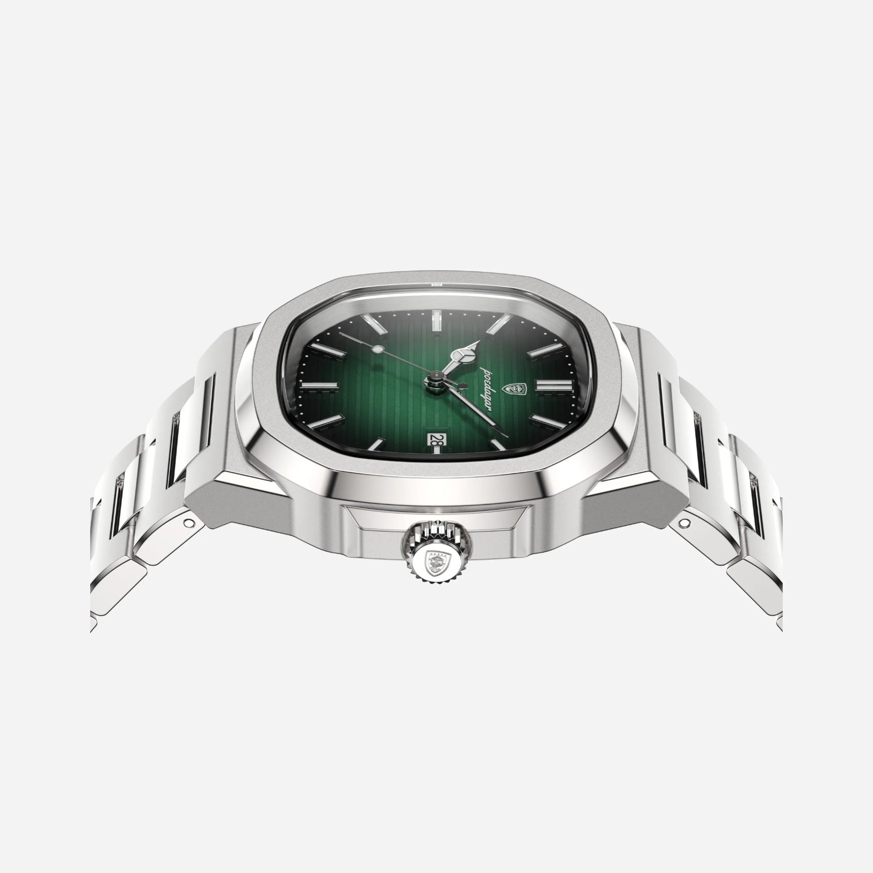 • Luxury design – the bold green dial and brushed silver finish deliver a sharp, eye-catching statement